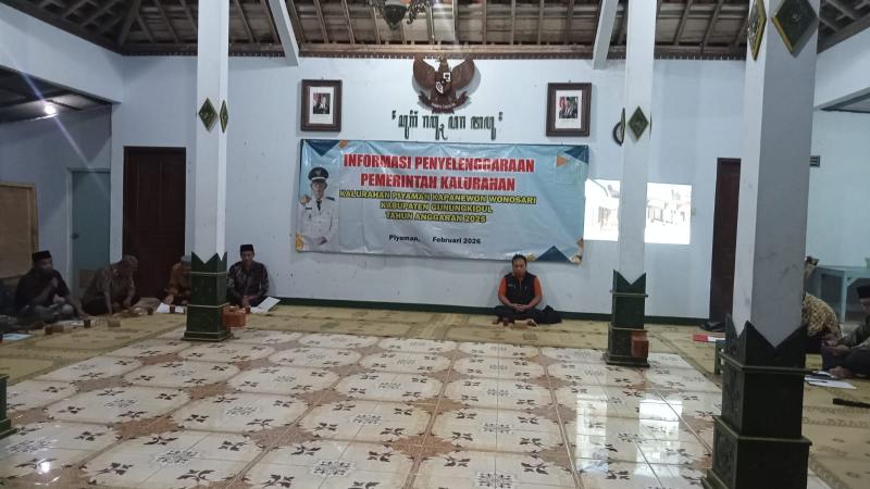 Penyampaian Informasi Penyelenggaraan Pemerintahan Kalurahan Kalurahan Piyaman Tahun Anggaran 2025 ke - 11 Padukuhan telah memasuki hari ke - 2. Padukuhan Piyaman I merupakan padukuhan yang mendapat giliran sebagai tempat dilaksanakannya kegiatan ini. Dilaksanakan pada hari Sabtu 07 Februari 2026 dimulai pada pukul 20.00 WIB sampai dengan selesai yang bertempat di Balai Padukuhan Piyaman I dan dihadiri dari unsur Pemerintah Kalurahan Piyaman adalah Lurah, Carik, Kasi dan Kaur serta selaku peserta adalah Dukuh Piyaman I, Bamuskal, Ketua RW, Ketua RT dari 4 RT di Padukuhan Piyaman I, Ketua LPMP beserta perwakilan tokoh masyarakat.